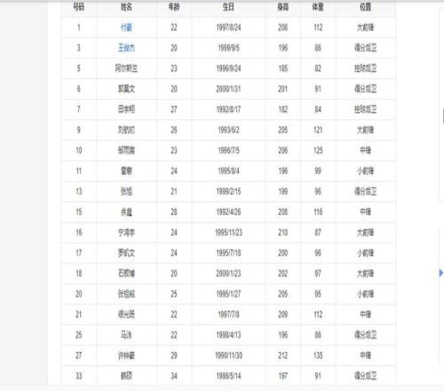 八一男篮解散前的最后一批球员名单如下。