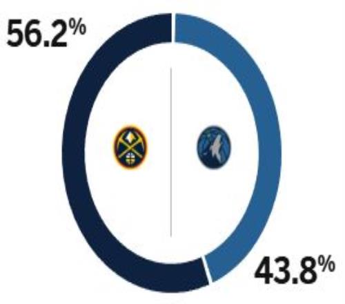 ESPN预测明日掘狼胜率:掘金56.2%,森林狼43.8%