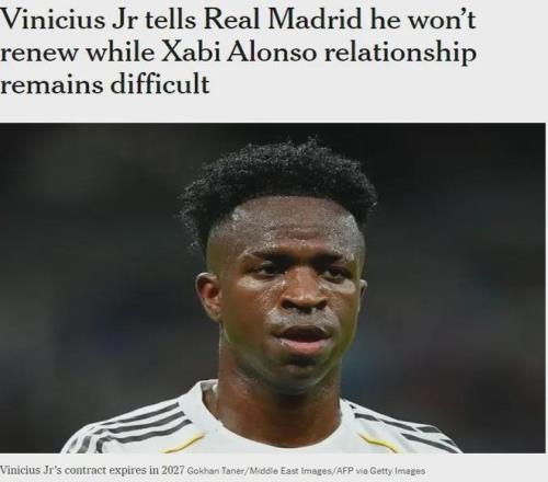 TA皇马方面跟队记者MC消息,维尼修斯已经告知弗洛伦蒂诺,在和球队主帅阿隆索关系紧张的情况下,他目前无意续约。