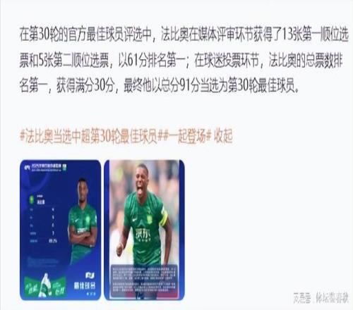 本赛季,国安再次在争冠的道路上无功而返。法比奥的金靴奖,成为了球队在这个赛季里唯一的亮光。凭借最后一轮的大爆发,法比奥锁定金靴,同时又以压倒性的得票优势当选为中超最后一轮的最佳球员,这不只是对法比奥进球数的奖励,也是对他整个赛季极为突出表现的认可。