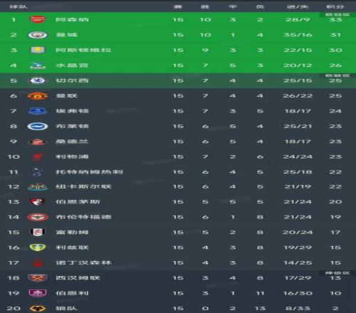 英超第15轮结束了所有比赛,最新积分榜如下!
